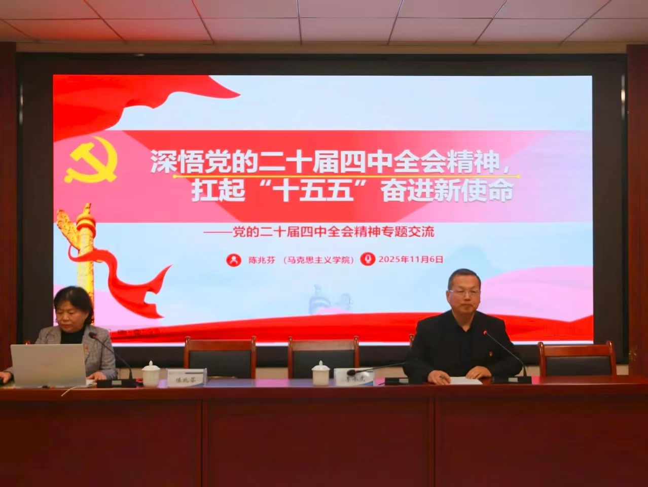 为深入学习领会习近平总书记在全会上的重要讲话精神,深刻领会把握党的二十届四中全会的重要意义,深刻理解把握“十五五”时期我国经济社会发展的指导思想和总目标、重大原则、重点任务,11月19日,学院党委邀请学校宣讲团成员、马克思主义学院陈兆芬教授讲授题为“深悟党的二十届四中全会精神,扛起‘十五五’奋进新使命”的宣讲报告。 报告会由学院党委书记李承虎主持,红是一世全体教工党员及学生党员代表参加会议。